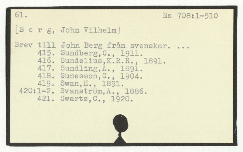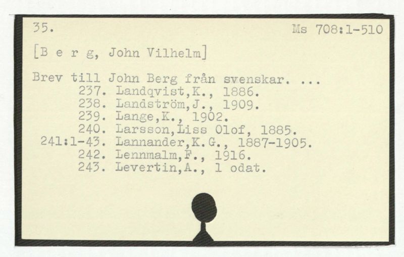 Brev till John Berg från svenskar. ...