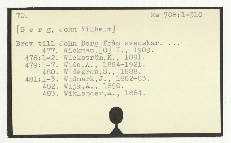 477. Wickman,[0] I., 1909.