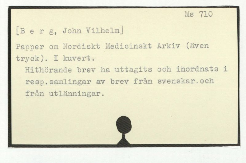 Papper om Nordiskt Medicinskt Arkiv (även tryck). I kuvert.