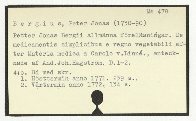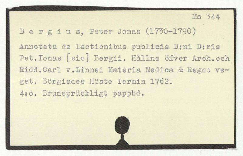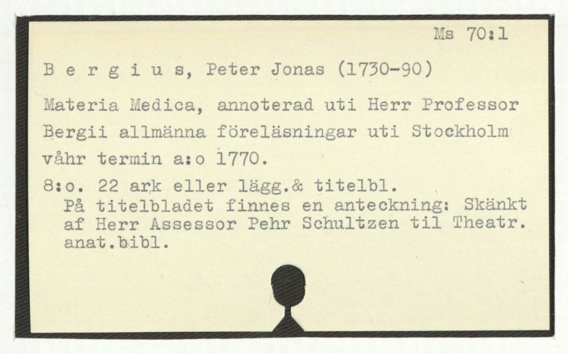 Materia Medica, annoterad uti Herr Professor Bergii allmänna föreläsningar uti Stockholm våhr termin a:o 1770.