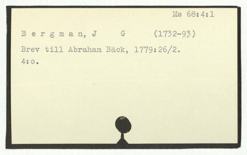 Brev till A.Bäck, 1778:3/6, 1781:8/6, 24/10, 27/10.