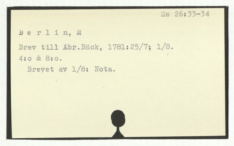 Bil.till brevet 24/10 1781: Brev från A.Bäck till M.Berlin, 1781:1/11.
