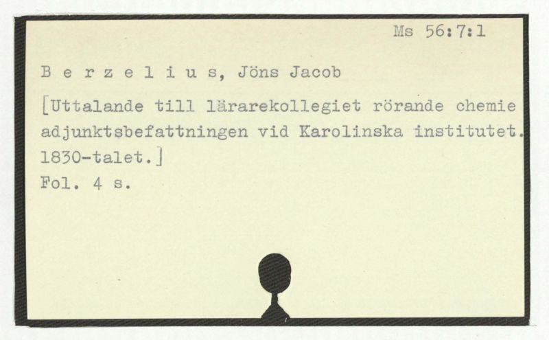 [Uttalande till lärandekollegiet rörande chemie adjunksbefattningen vid Karolinska institutet. 1830-talet.]
