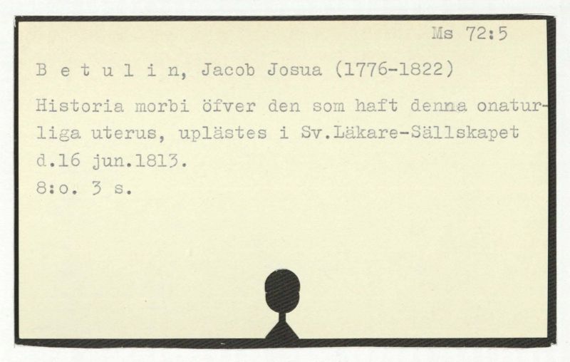 Historia morbi över den som haft denna onaturliga uterus, uplästes i Sv.Läkare-Sällskapet
