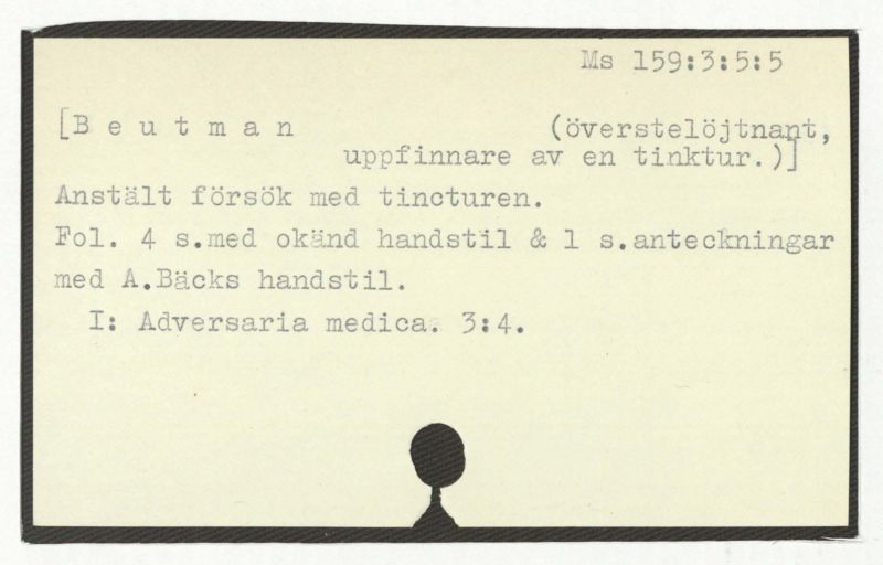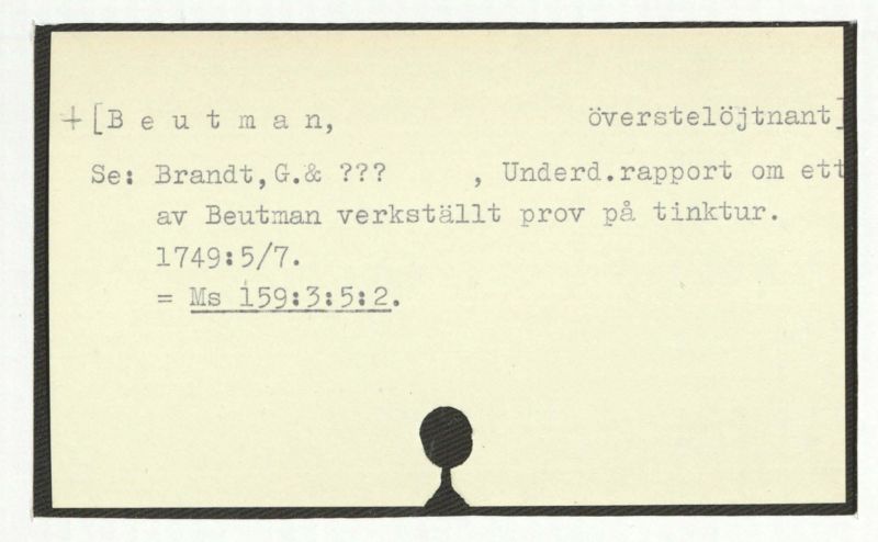 [Beutman(överstelöjtnant, uppfinnare av en tinktur.)]