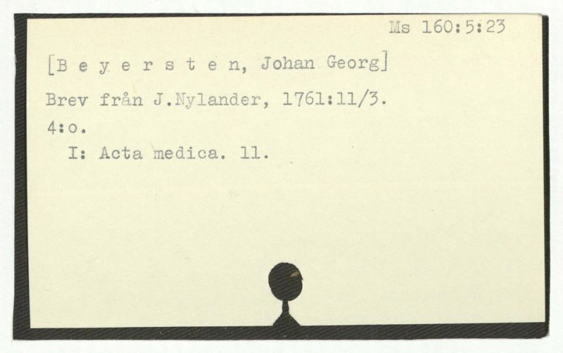 På titelbladet finnes en anteckning: Skänkt af Herr Assessor Pehr Schultzen til Theatr. anat.bibl.