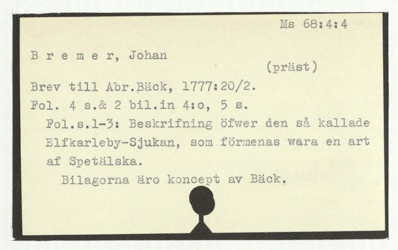 Brev till Abr. Bäck, 1777:20/2.