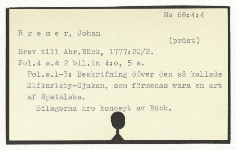 Båda avgivna till A. Bäck, [Om förf:s sjukdom]