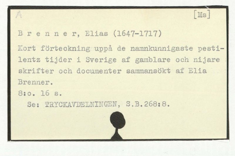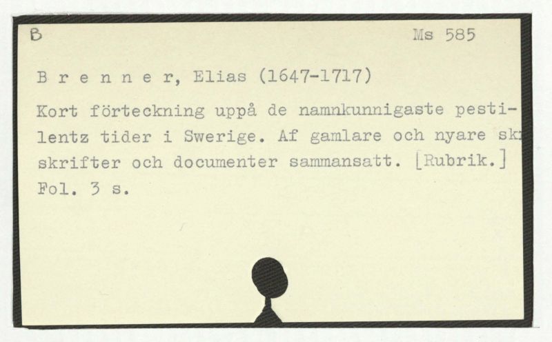 Kort förtickning uppå de namnkunnigaste pestilentz tijder i Sverige af gamblare och nijare skrifter och dokumenter sammansökt af Elia Brenner.