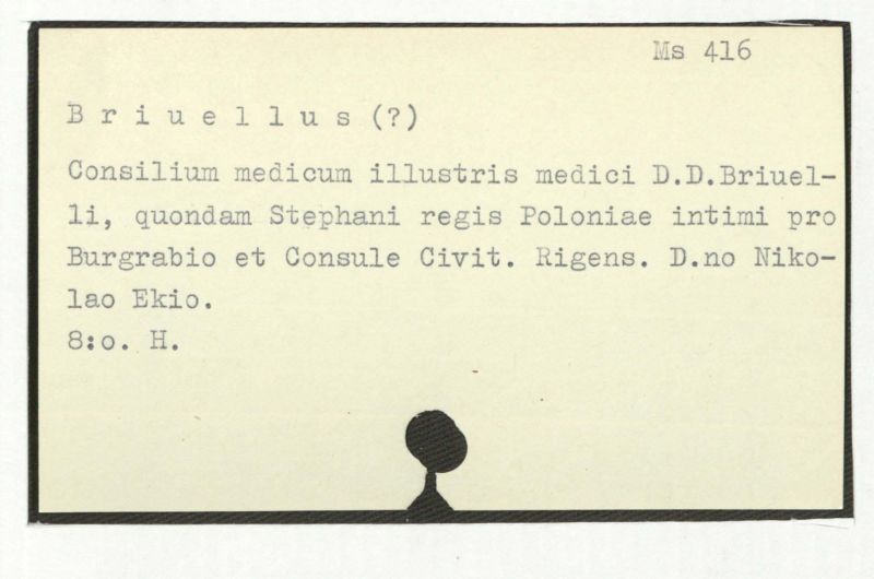 Consilium medicum illustris medici D.D.Briuelli, quondam Stephani regis Poloniae intimi pro Burgrabio et Consule Civit. Regens. D.no Nikolao Ekio.