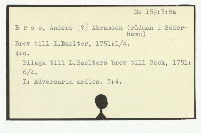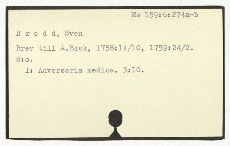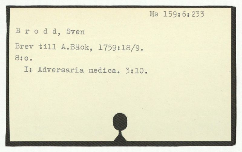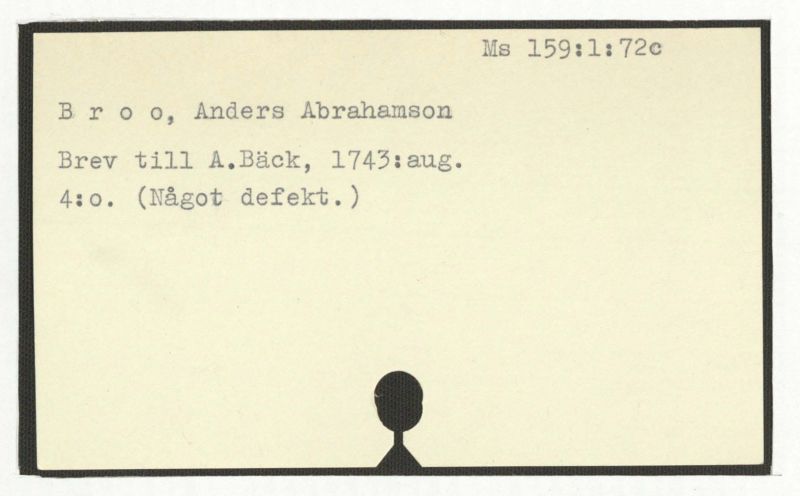 Brev till A.Bäck, 1759:9/10.