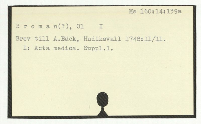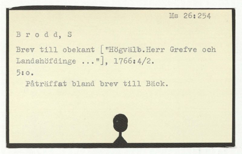 Brev till A. Bäck, 1745.