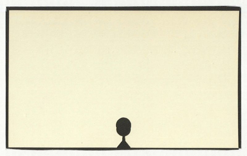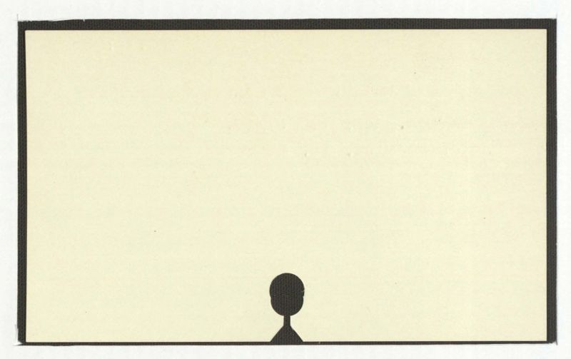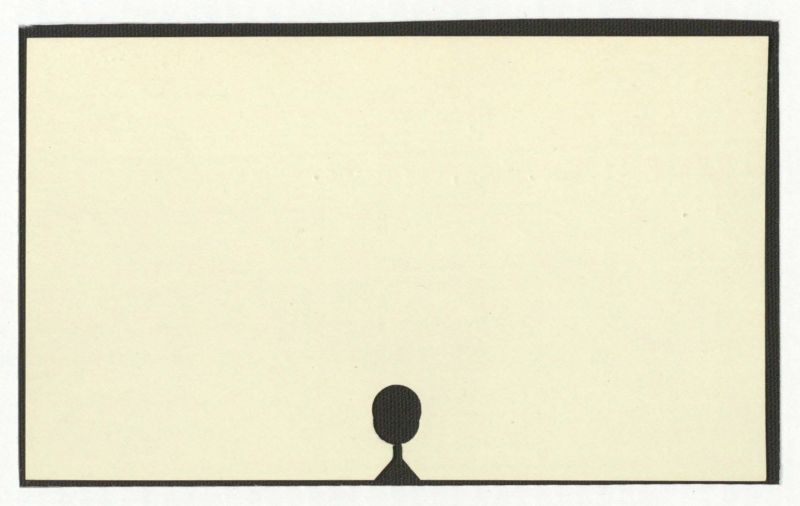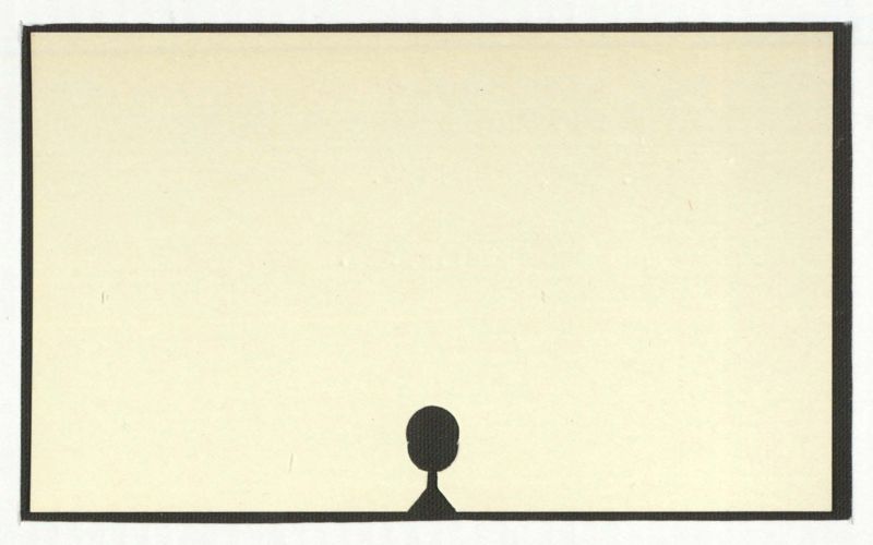 There is no text present in the image. The image consists of a black rectangular border surrounding a beige background with a simple black silhouette of a person at the bottom.
