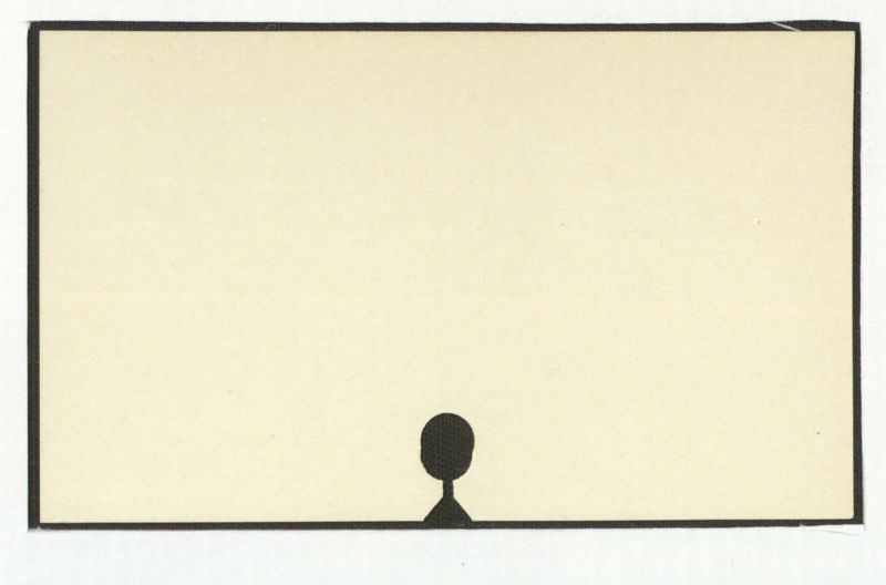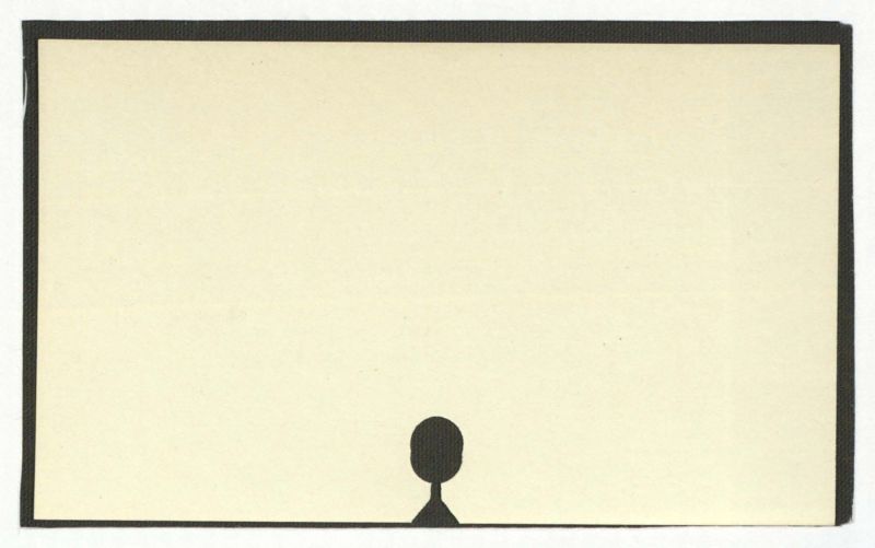 Thereisnotextvisibleintheimage. Theimageconsistsofablackborder, a beige background, and a black silhouette of a person at the bottom.