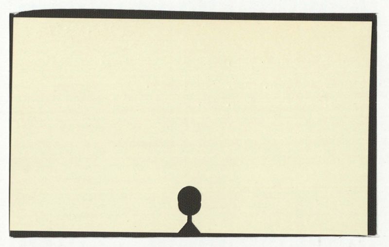 There is no text present in the image. The image consists of a beige rectangular area with a black border and a black silhouette of a person's head and upper body.