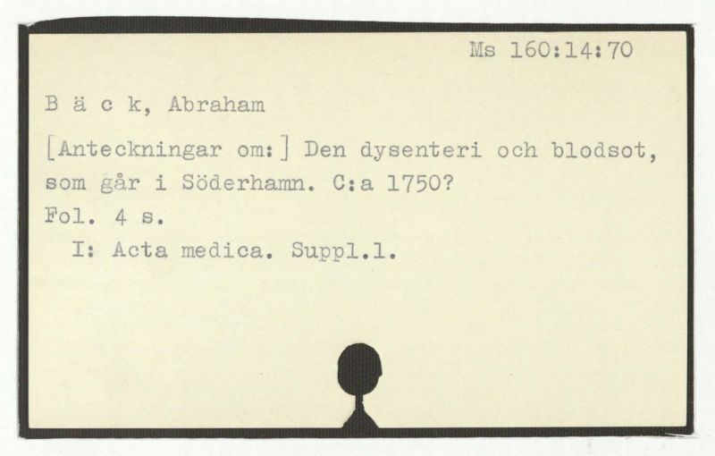 [Anteckningar om:] Den dysenteri och blodsot, som går i Söderhamn. C:a 1750?