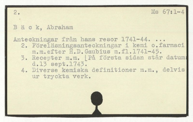 2. Föreläsningsanteckningar i kemi o. farmaci m.m.efter H.D. Gaubius m.f1.1741-45.