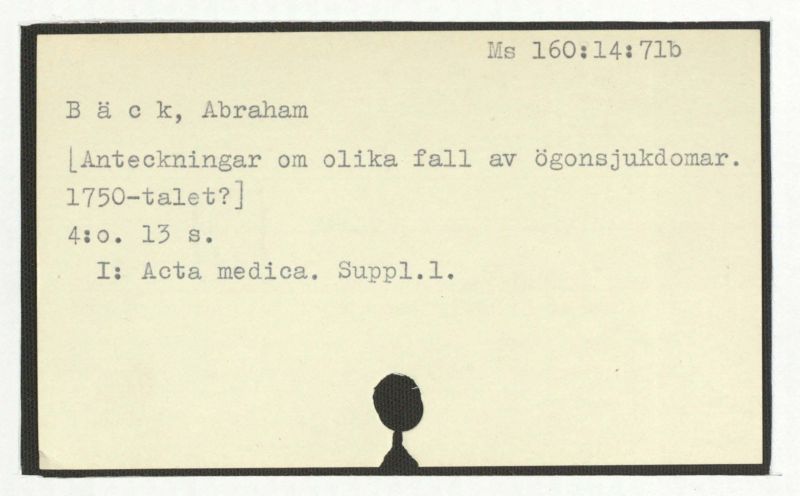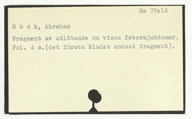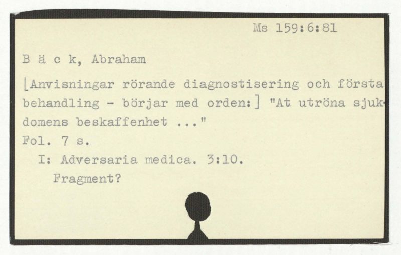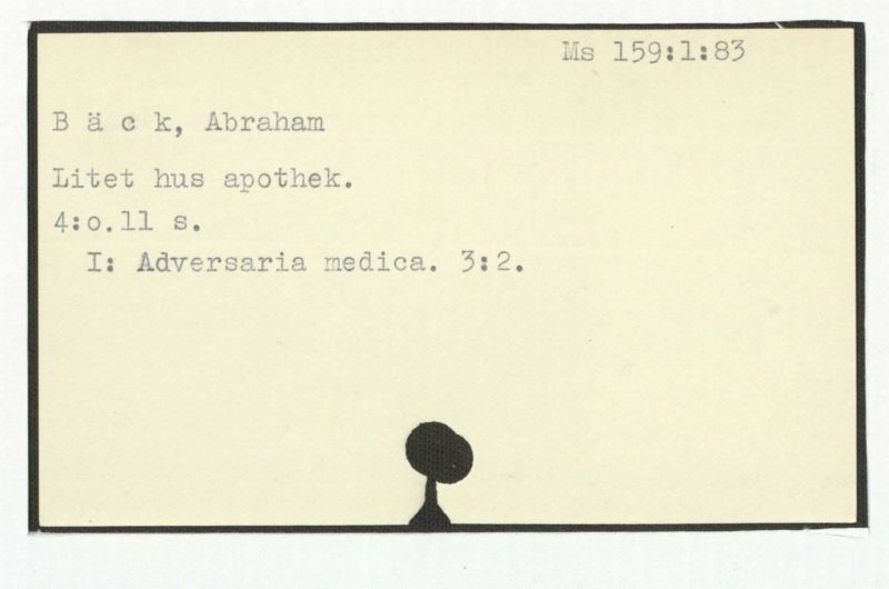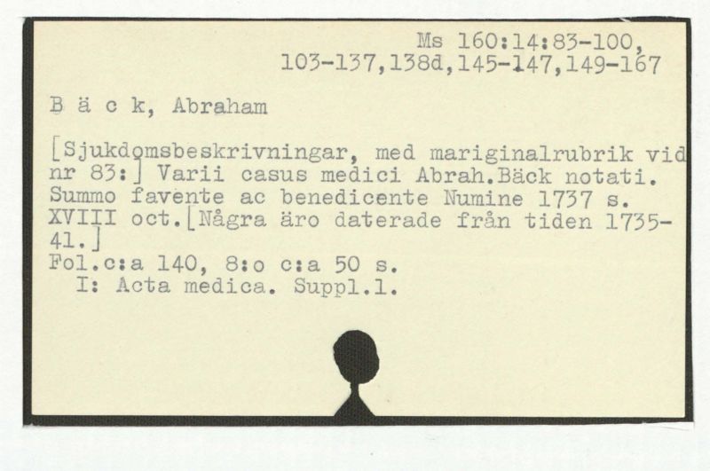 [Sjukdomsbeskrivningar, med mariginalrubrik vid nr 83:] Varii casus medici Abrah.Bäck notati.
