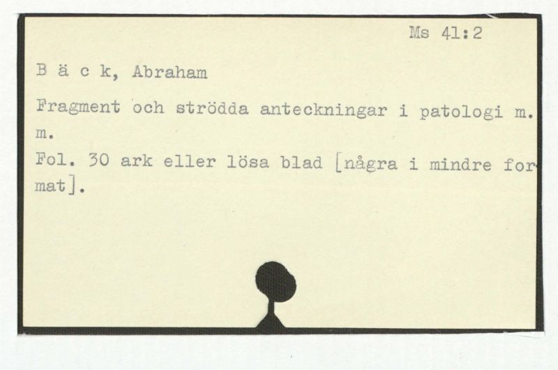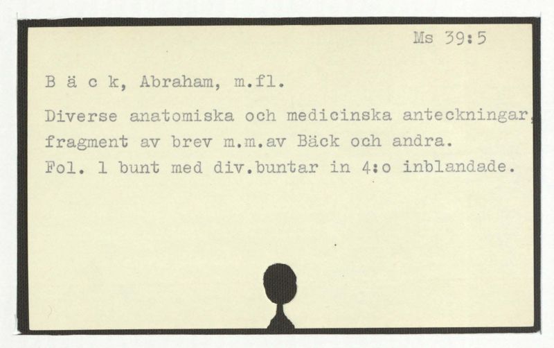 Diverse anatomiska och medicinska anteckningar fragment av brev m.m. av Bäck och andra.