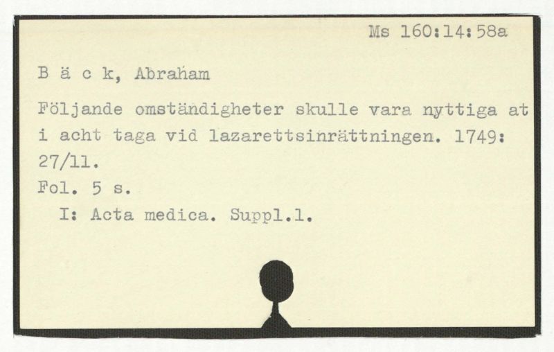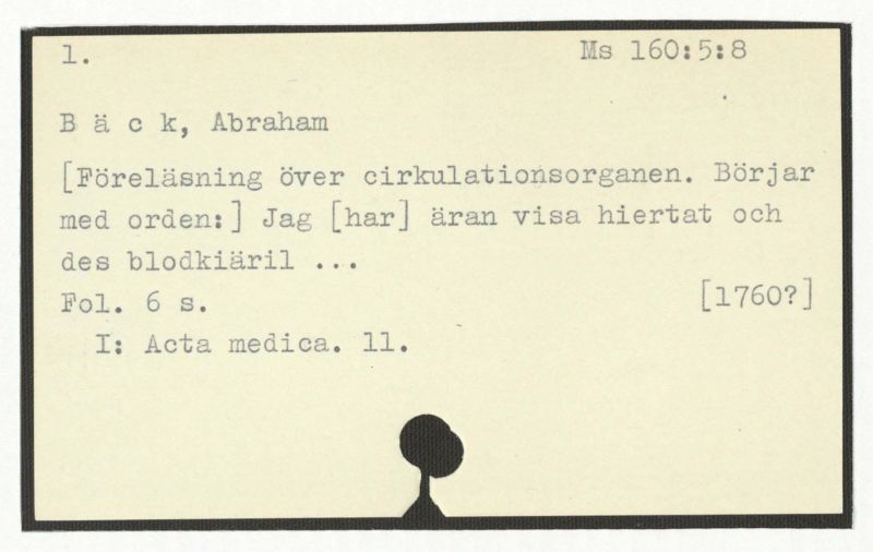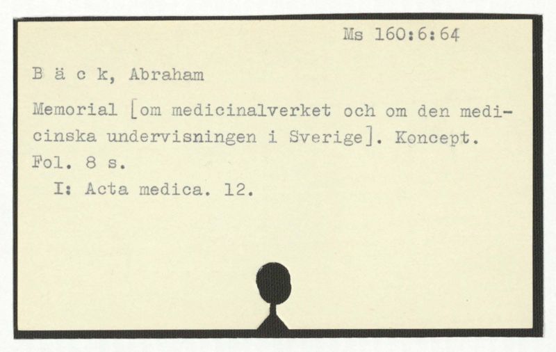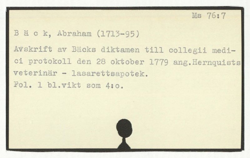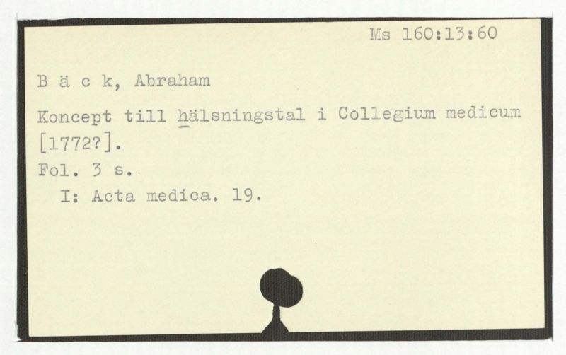 Avskrift av Bäcks diktamen till collegii medi-