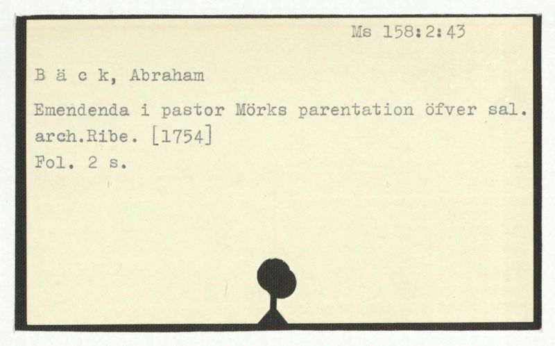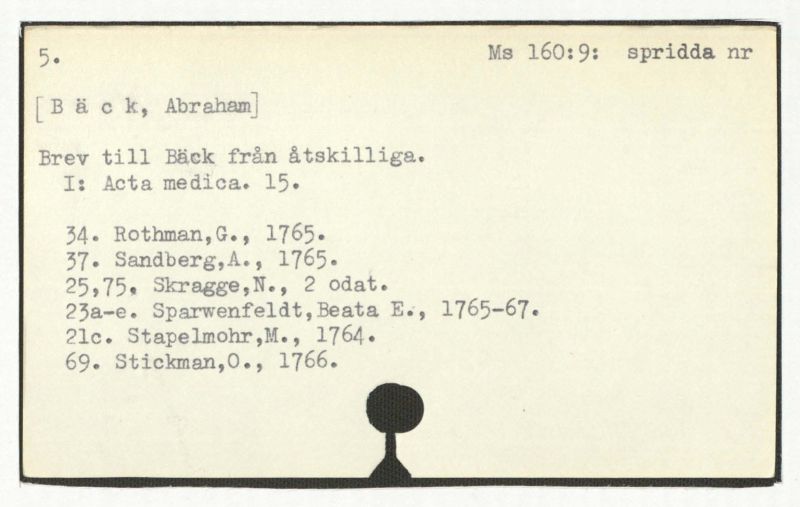 Brev till Bäck från åtskilliga.