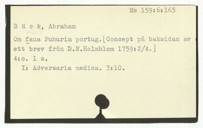 Om faua Puhurim portug.[Concept på baksidan av ett brev från D.N.Holmbloom 1759:2/4.]