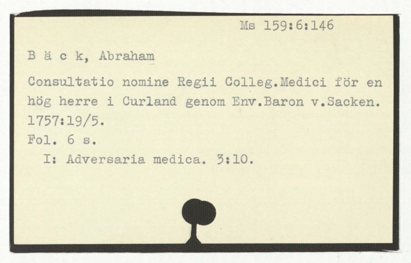 Consultatio nomine Regii Colleg.Medici för en hög herre i Curland genom Env.Baron v.Sacken.