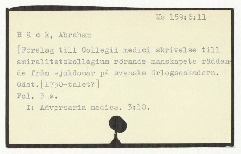 [Förslag till Collegii medici skrivelse till amiralitetskollegium rörande manskapets räddande från sjukdomar på svenska örlogseskadern. Odat.[1750-talet?]