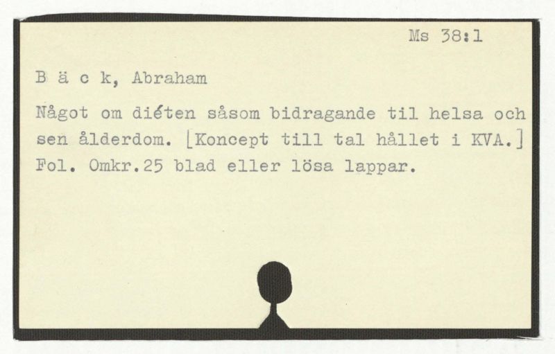 Något om diétet såsom bidragande till helsa och sen åldern dom. [Kontcept till tal hållet i KVA.]