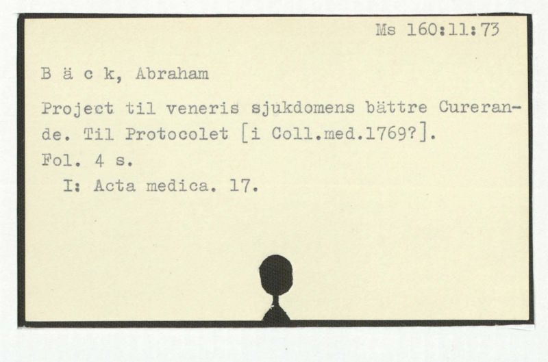 Project til veneris sjukdomens bättre Curerande. Til Proto colet [i Coll.med.1769?].