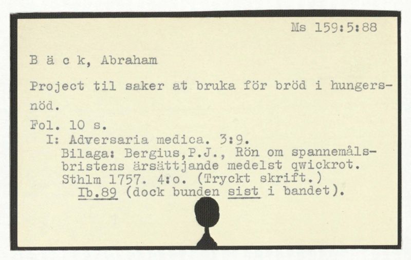 Bilaga: Bergius, P.J., Rön om spannemålsbristens ärsättjande medelst qwickrot.
