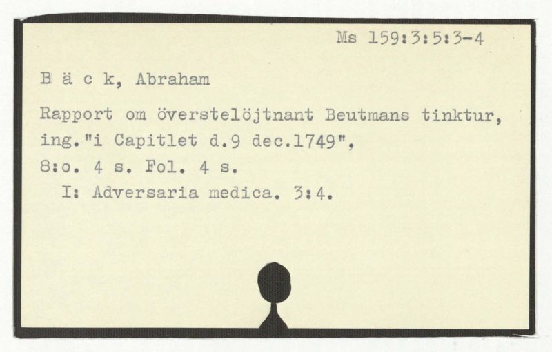 Rapport om överstelöjtnant Beutmans tinktur, ing."i Capitlet d.9 dec.1749",