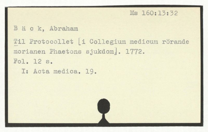 Til Protocollet [i Collegium medicum rörande morianen Phaetons sjukdom]. 1772.