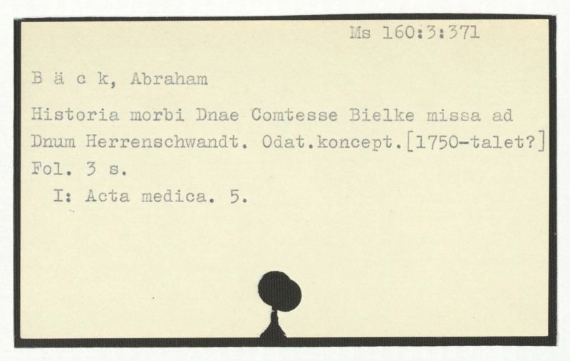 Historia morbi Dnae Comtesse Bielke missa ad Dnum Herrenschwandt. Odat. koncept. [1750-talet?]