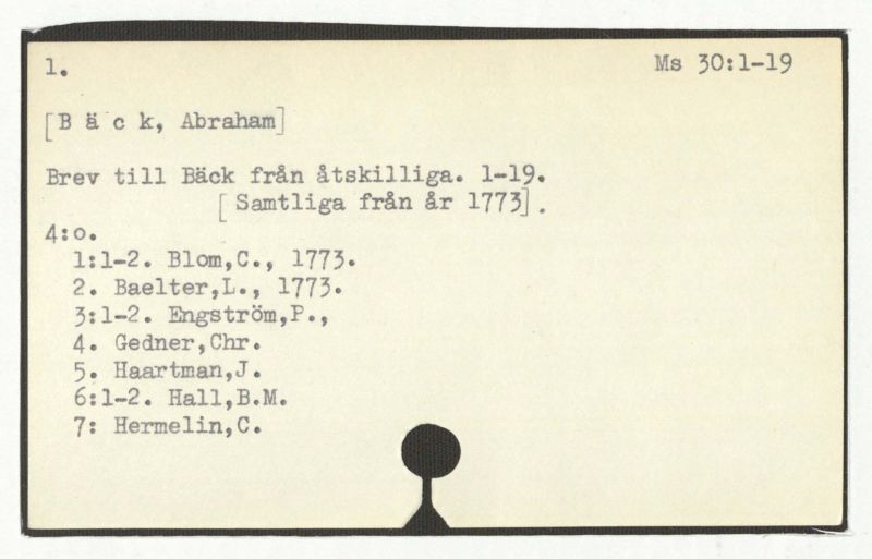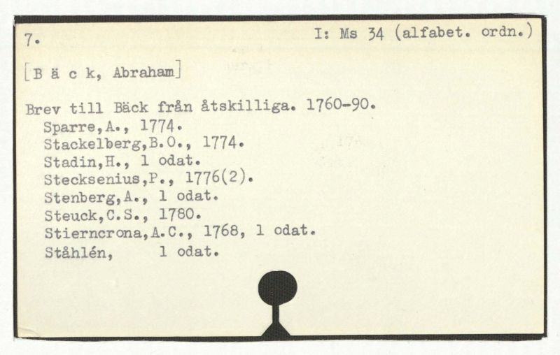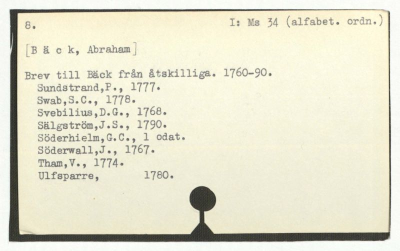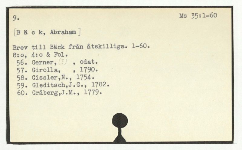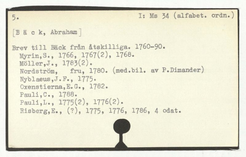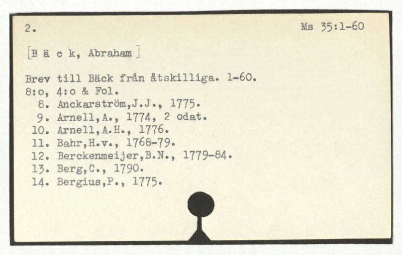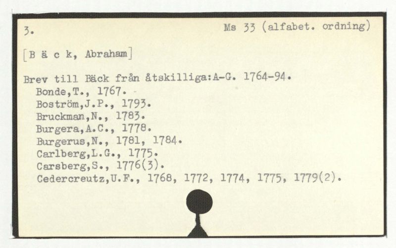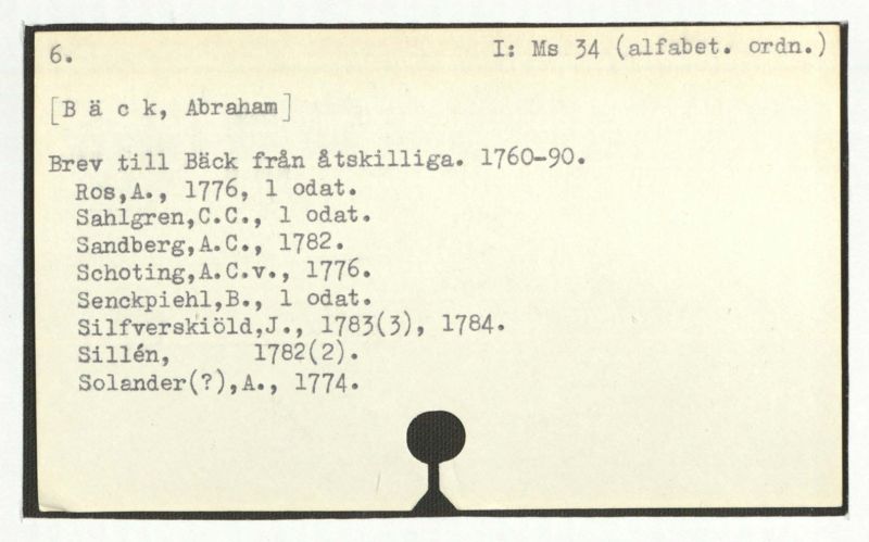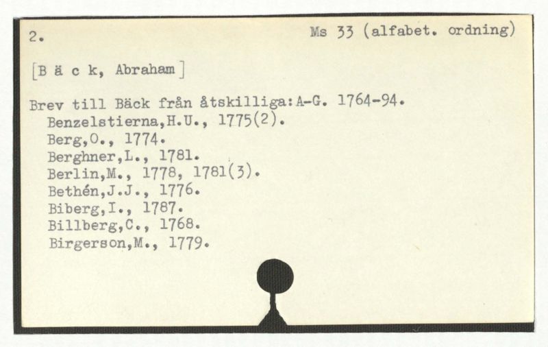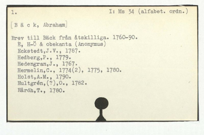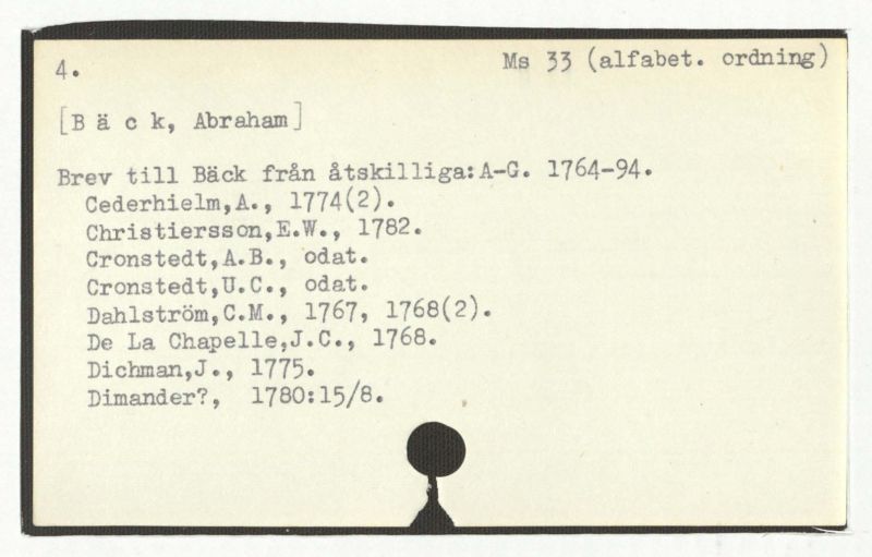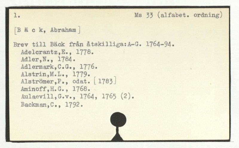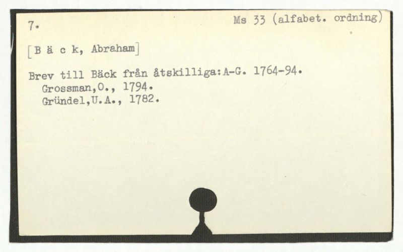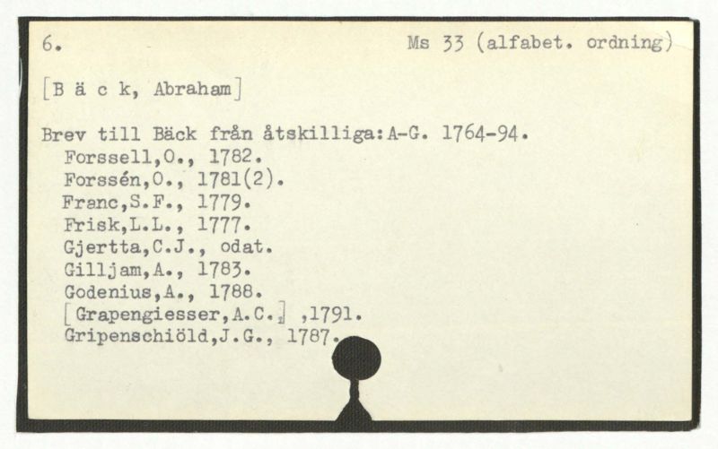 Brev till Bäck från åtskillliga:A-G. 1764-94.