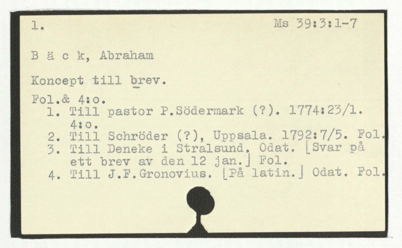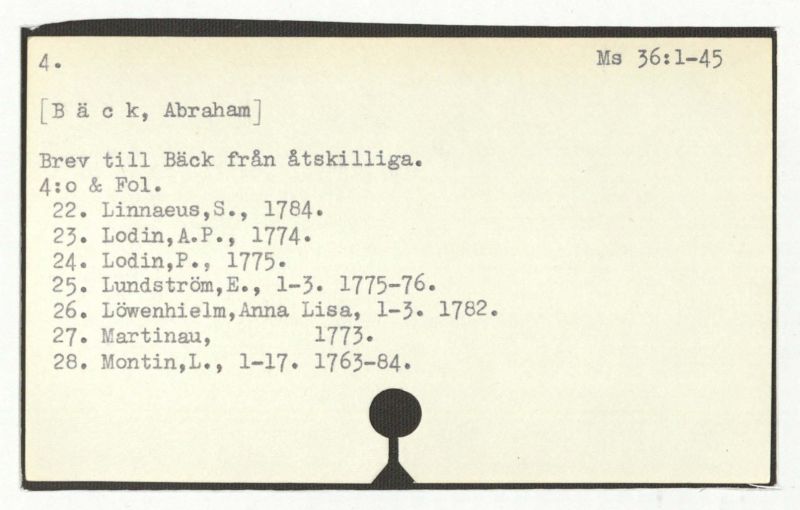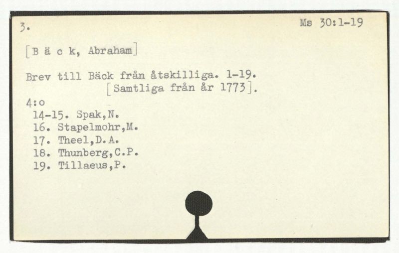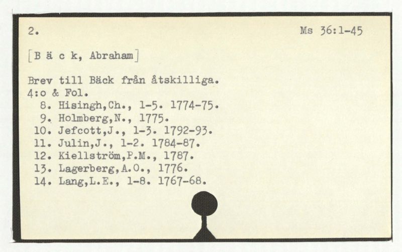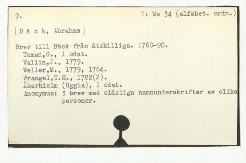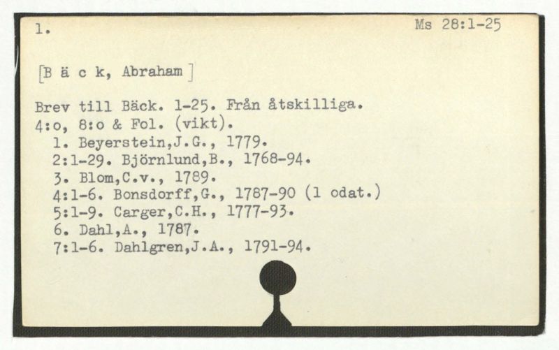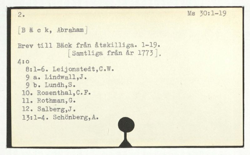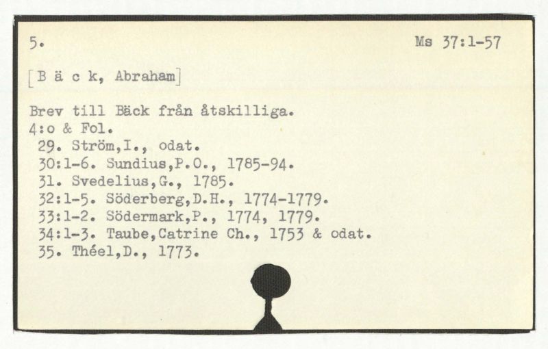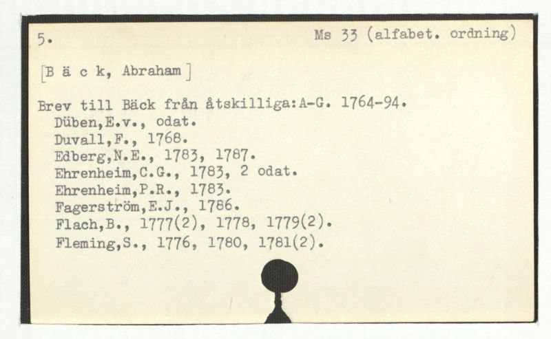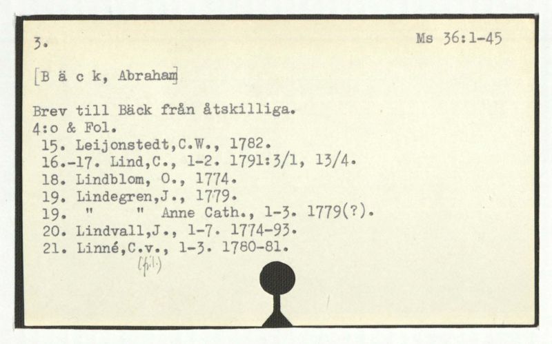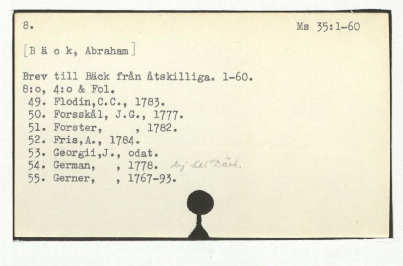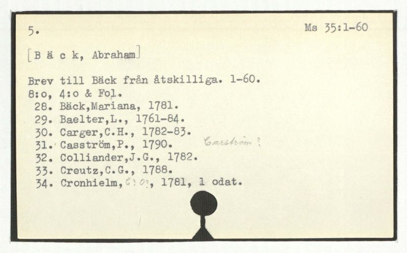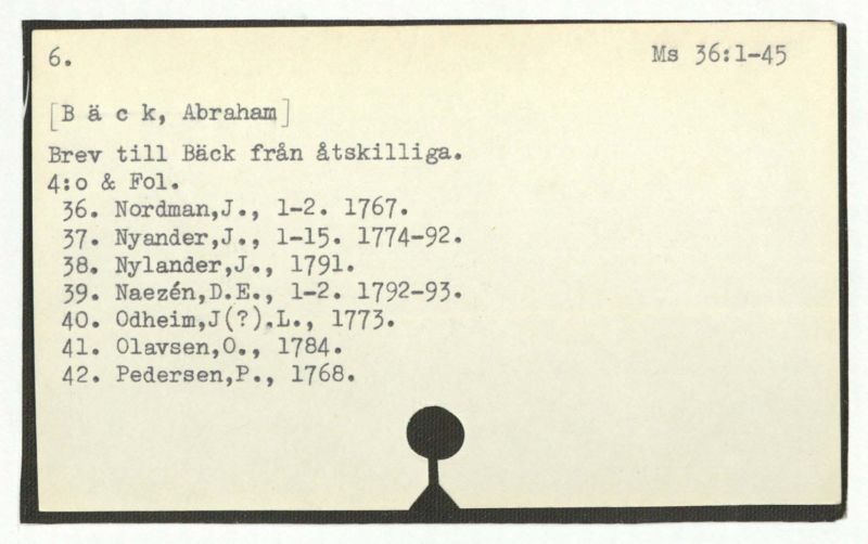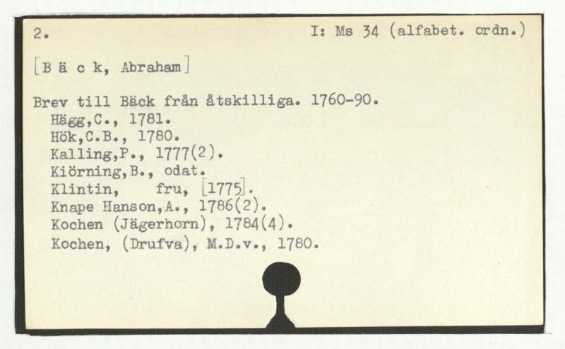 Brev till Bäck från åtskillliga:A-G. 1764-94.