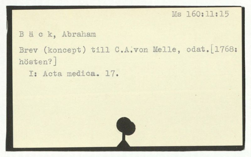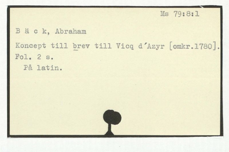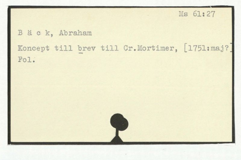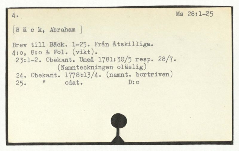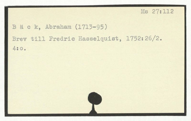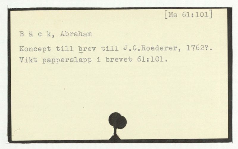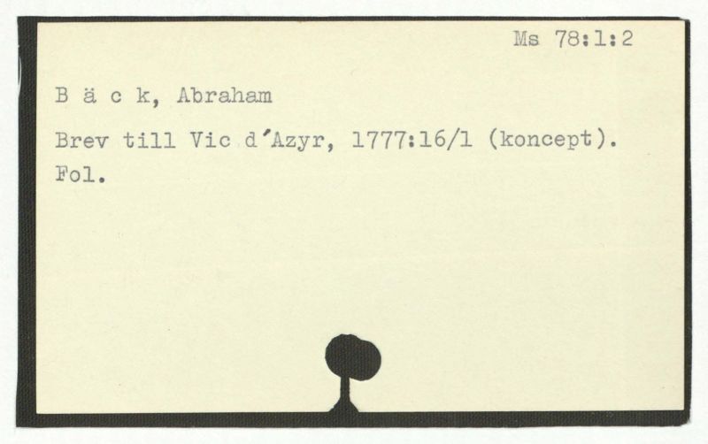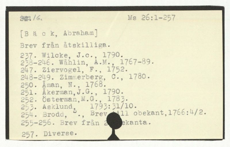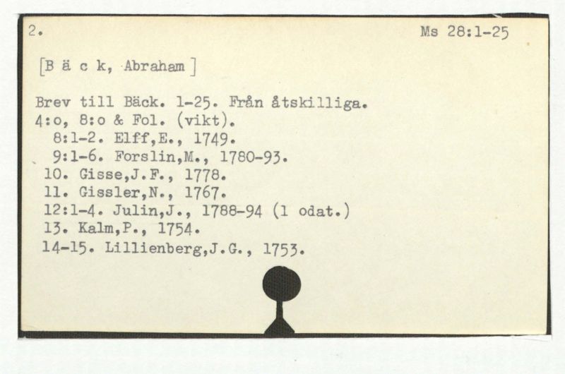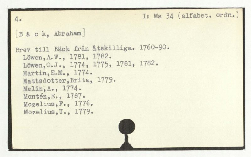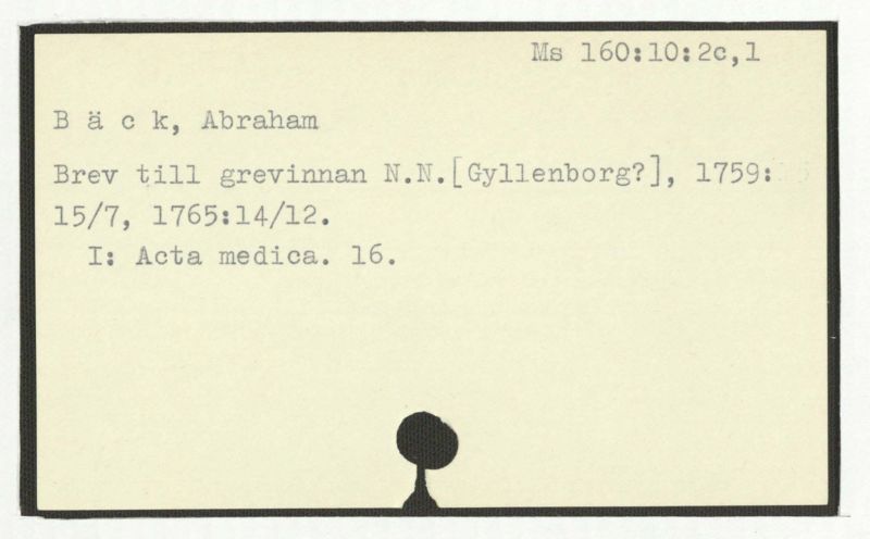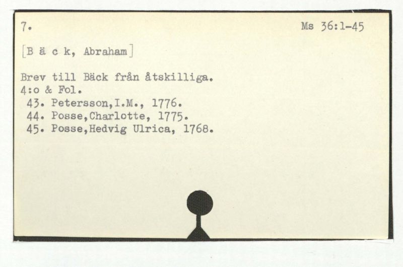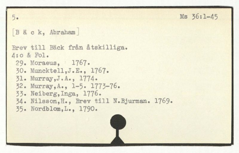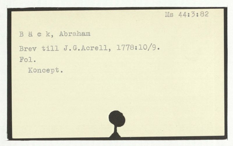 Brev till Bäck från åtskillliga:A-G. 1764-94.