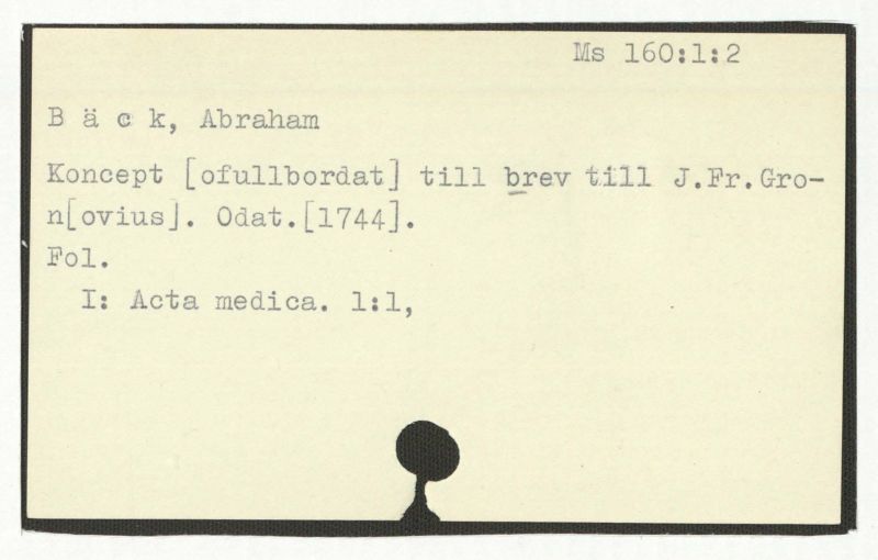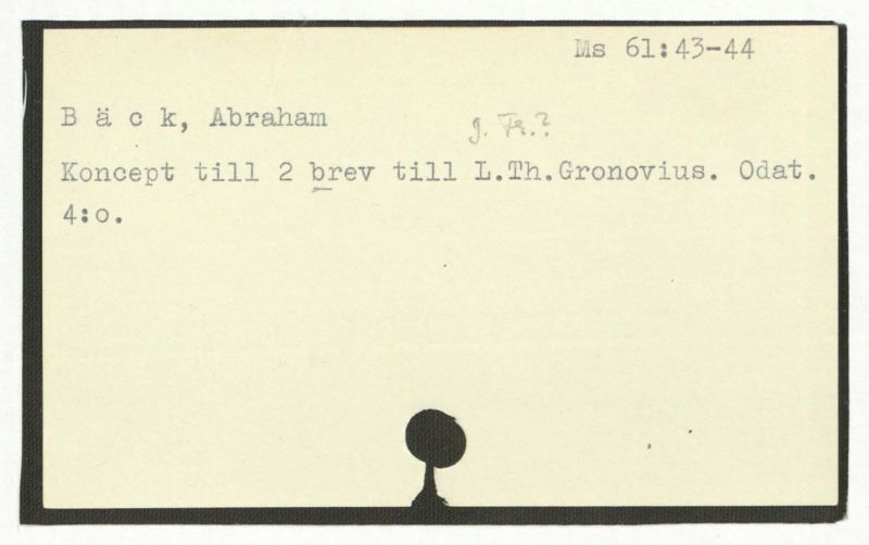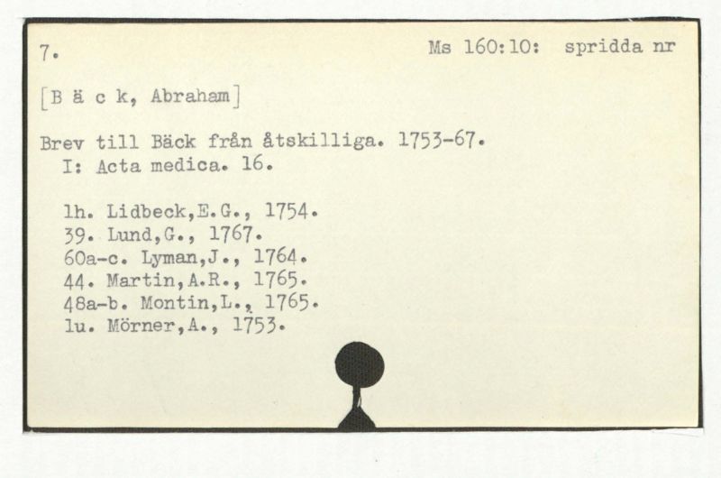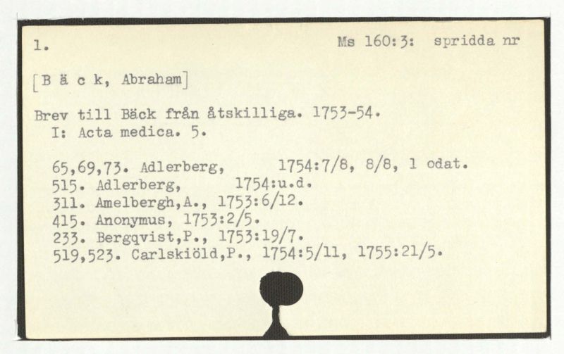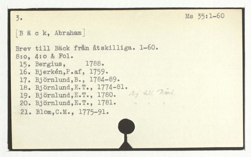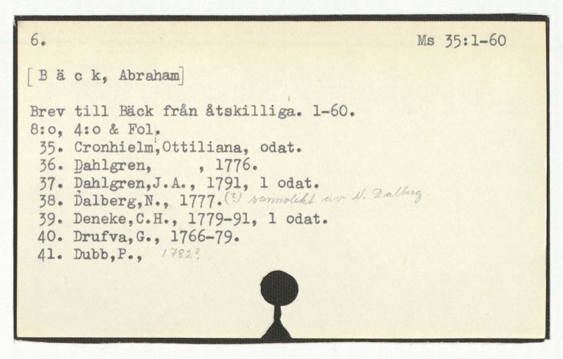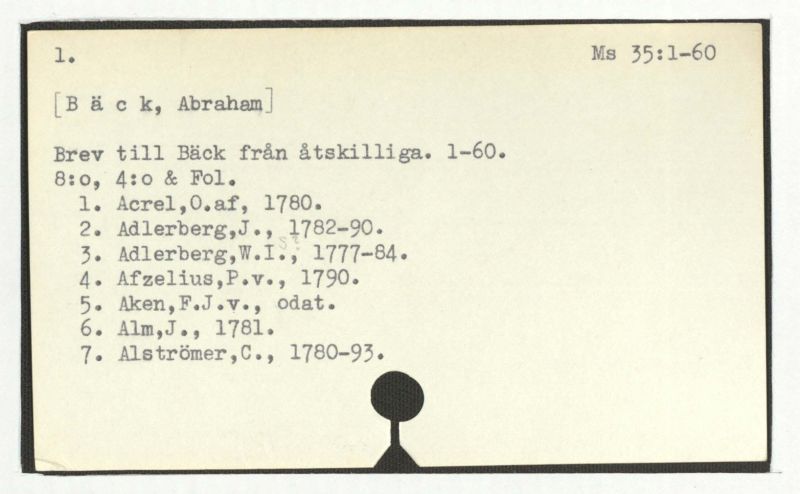 Brev till Bäck från åtskilliga. l-60.