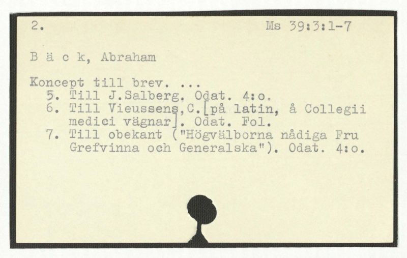 6. Till Vieuxsens, C.[på latin, å Collegii medici vägna]. Odat. Fol.