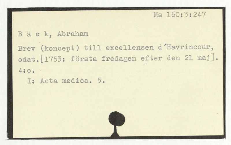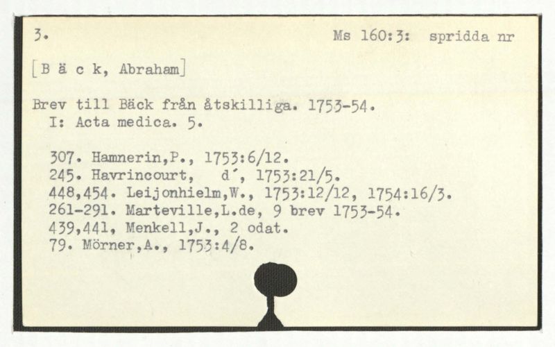 Brev till Bäck från åtskilliga. 1753-54.