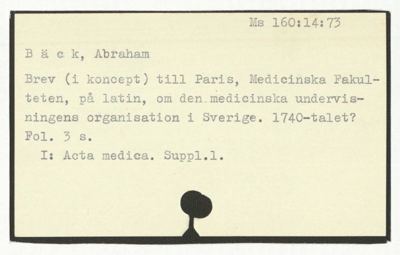 Brev (i koncept) till Paris, Medicinska Fakulteten, på latin, om den medicinska undervisningens organisation i Sverige. 1740-talet?