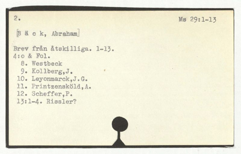 Brev till Bäck från åtskilliga.