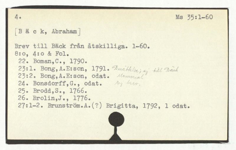 23:1. Bong,A.E:son, 1791. Braäthelse; jag till Bäck Memorial Kaj brew.