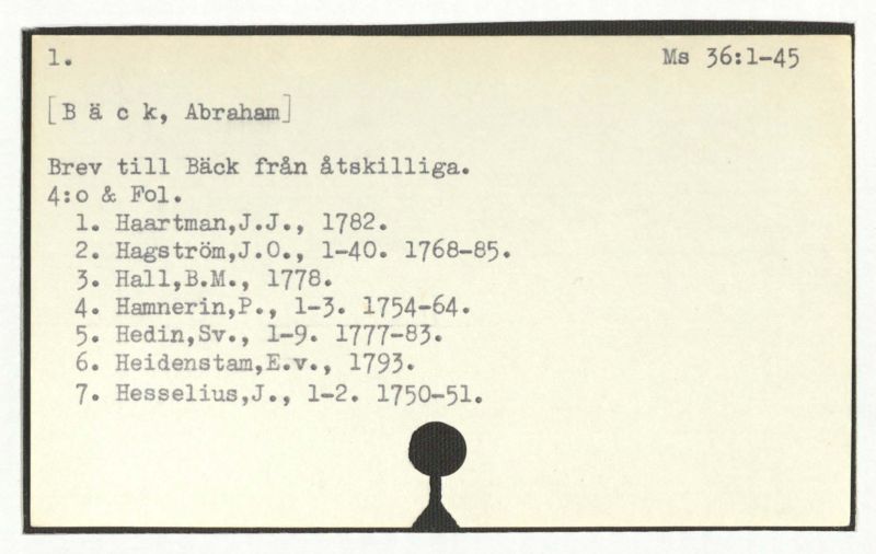 1. Haartman,J.J., 1782.