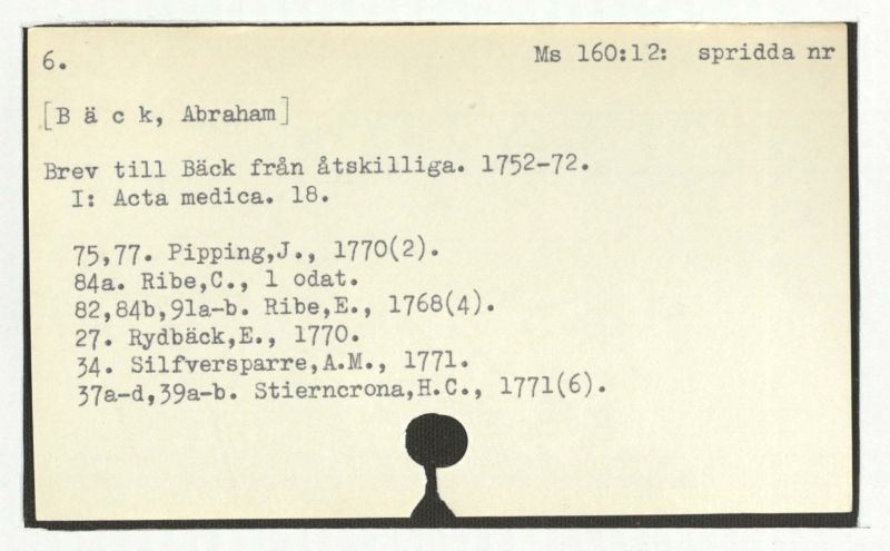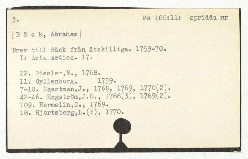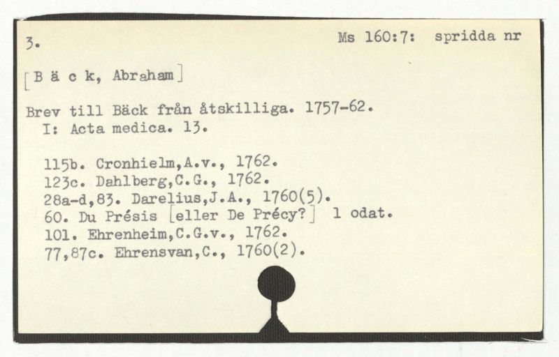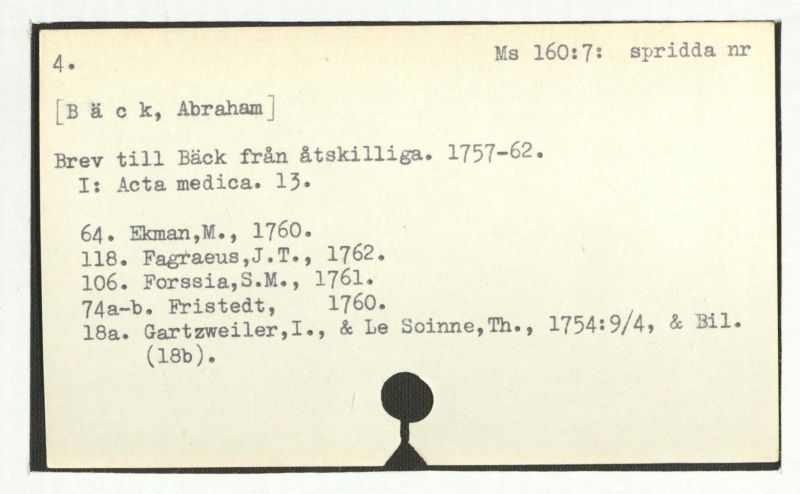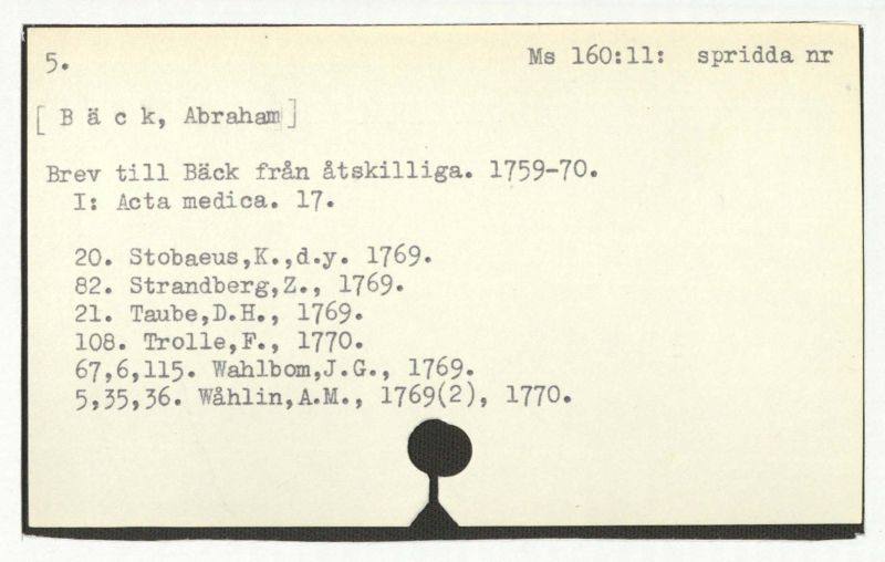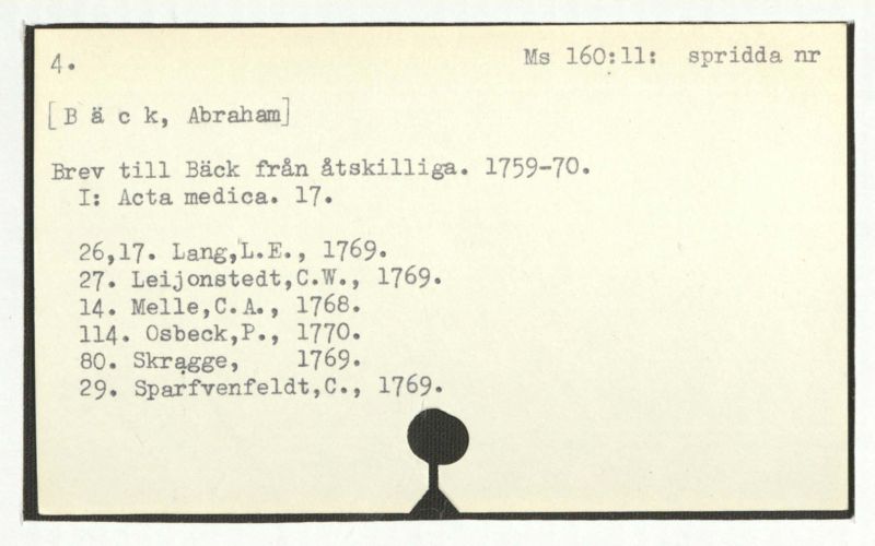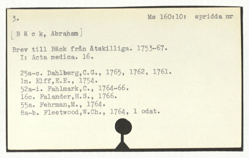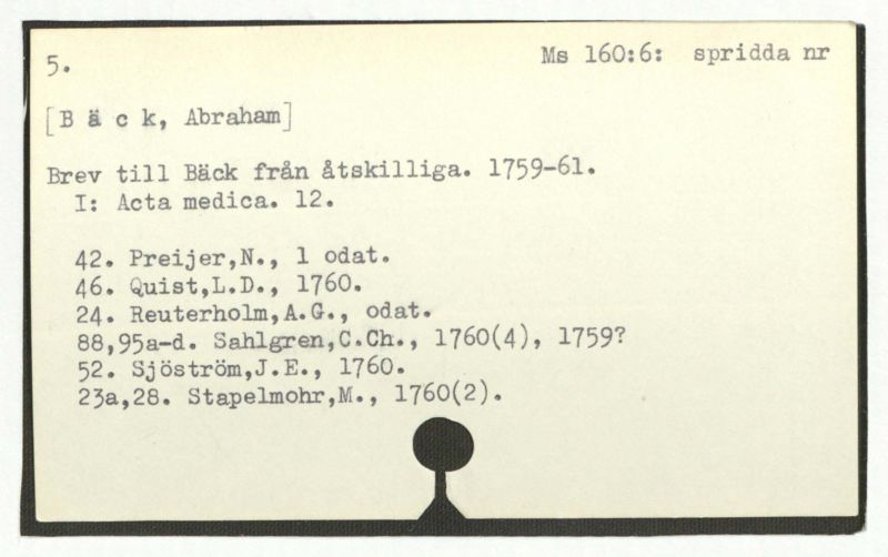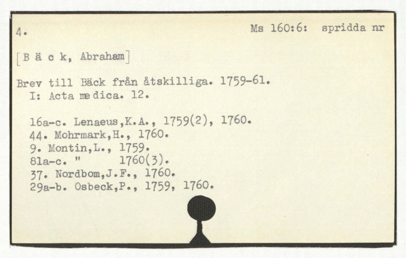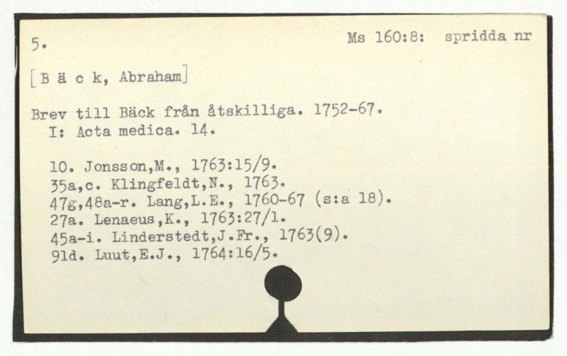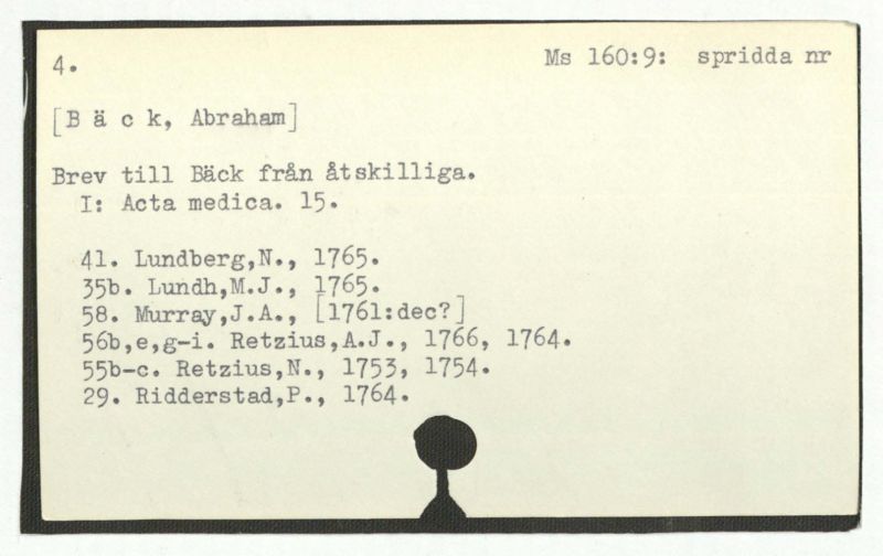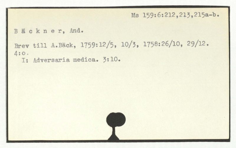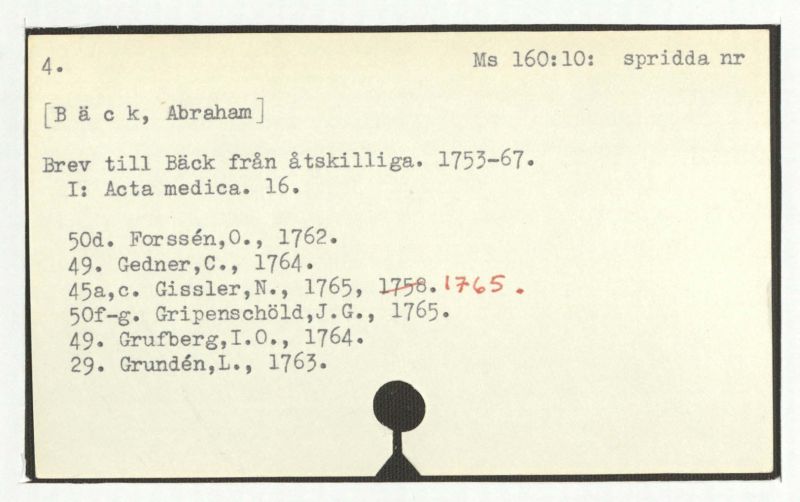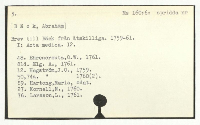 Brev till A.Bäck, 1759:12/5, 10/3, 1758:26/10, 29/12.
