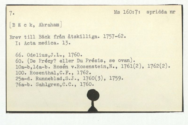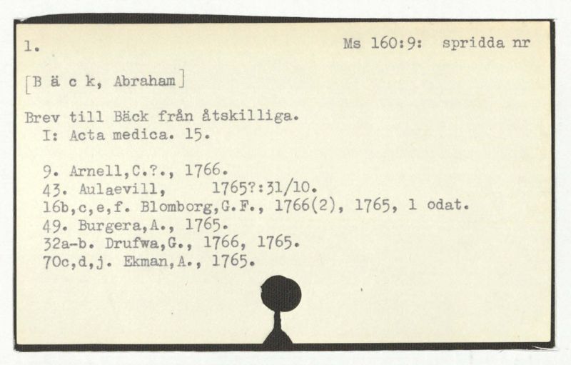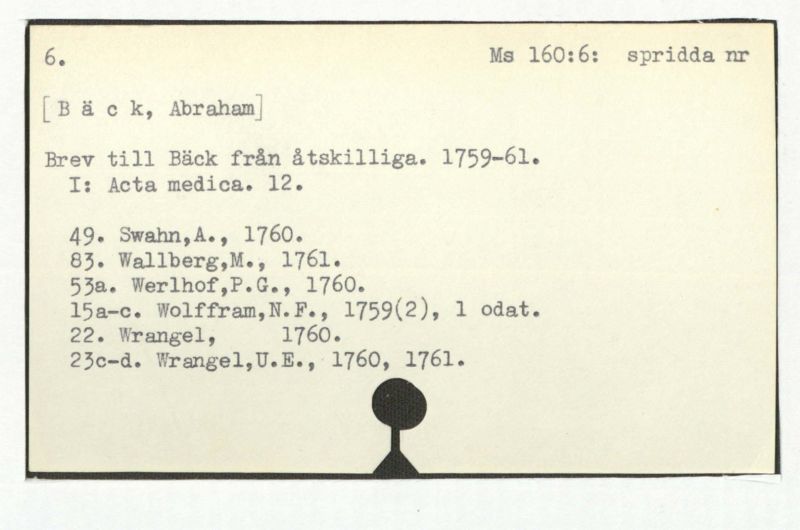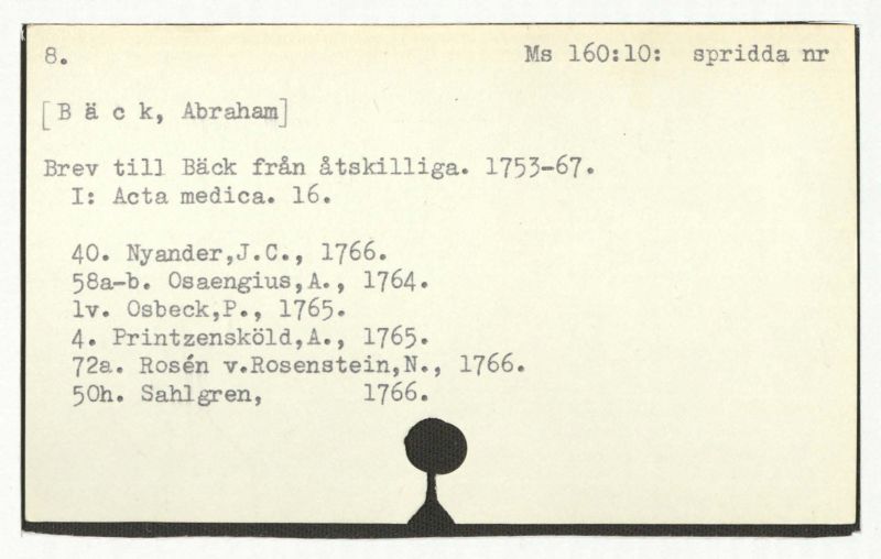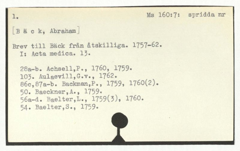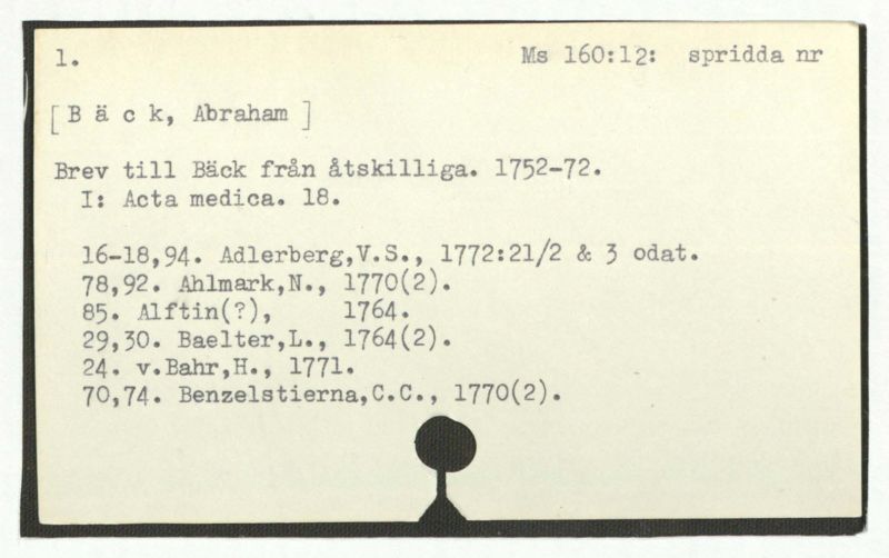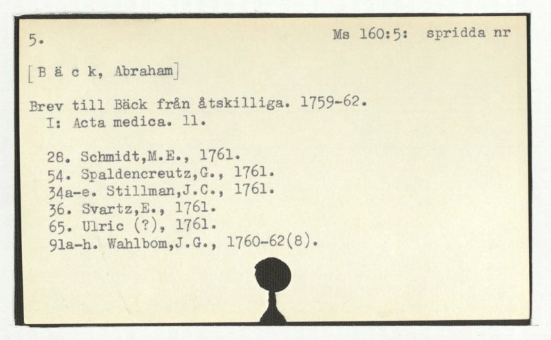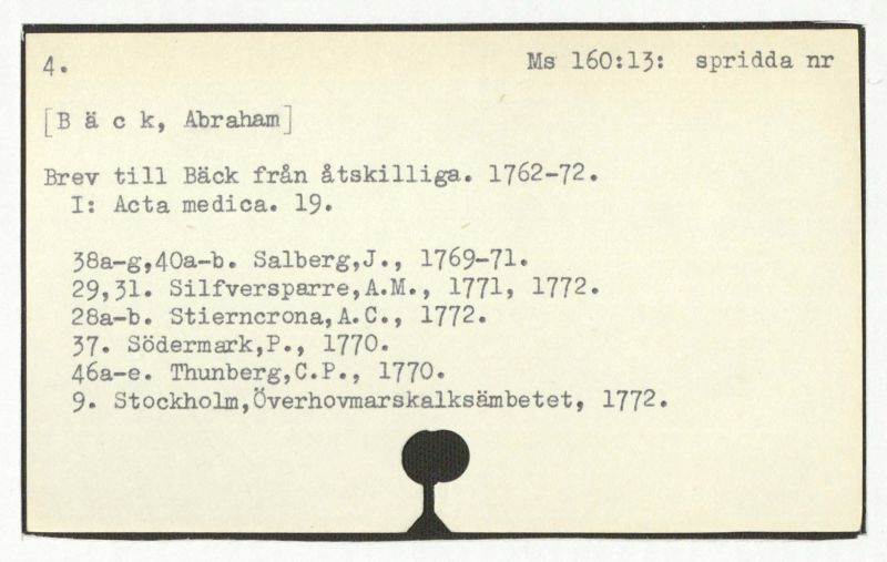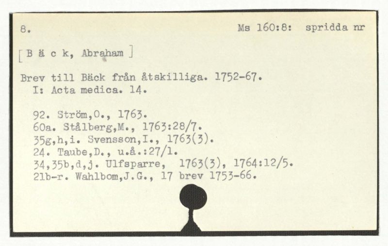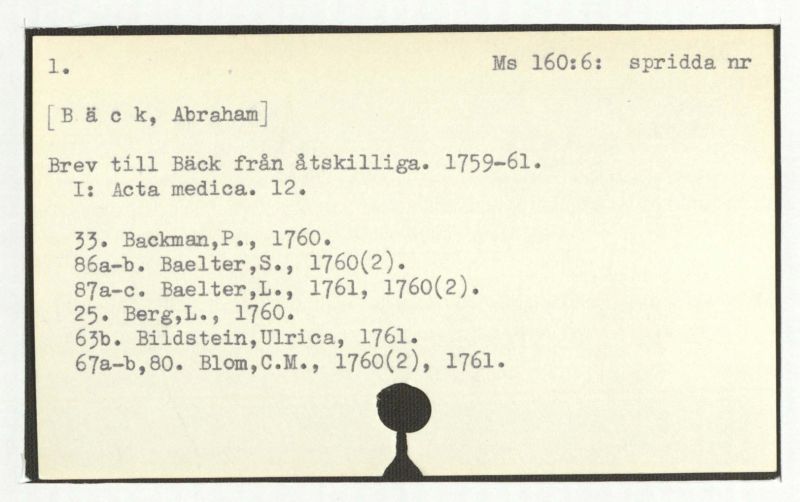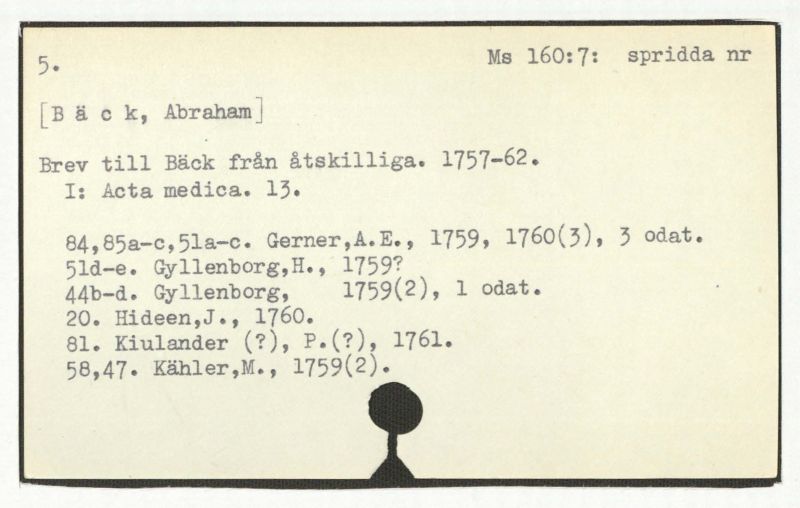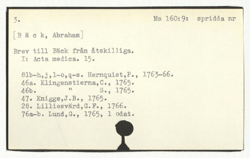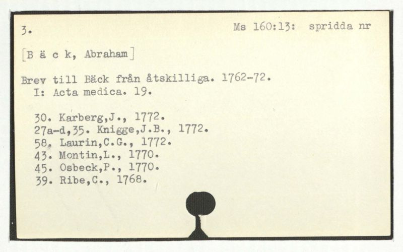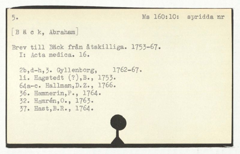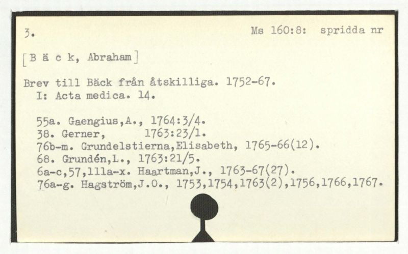 Brev till A.Bäck, 1759:12/5, 10/3, 1758:26/10, 29/12.