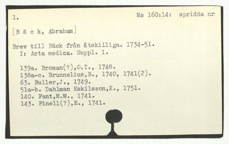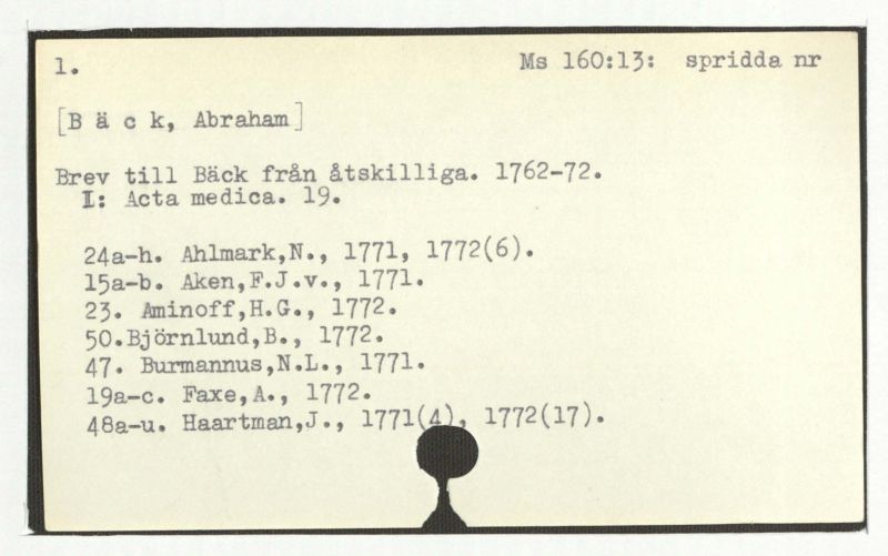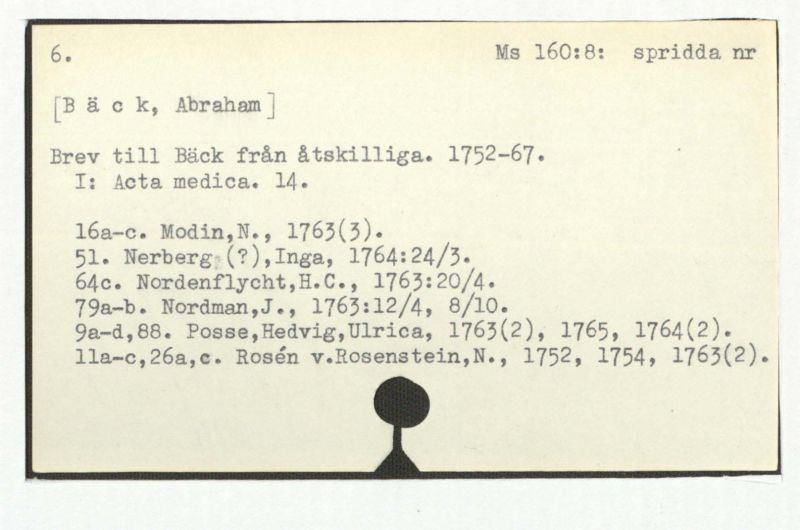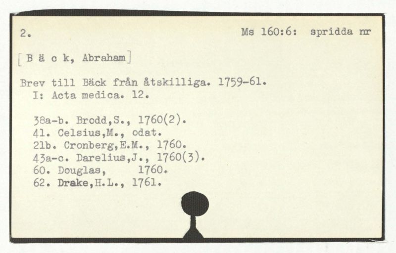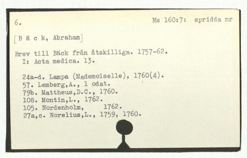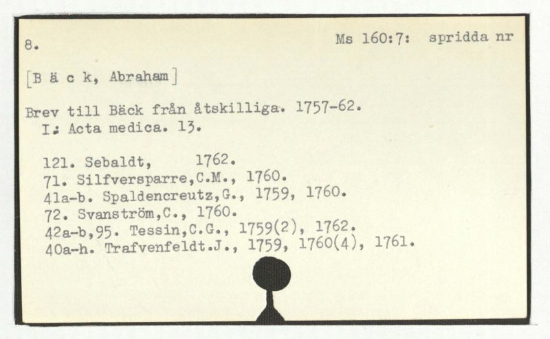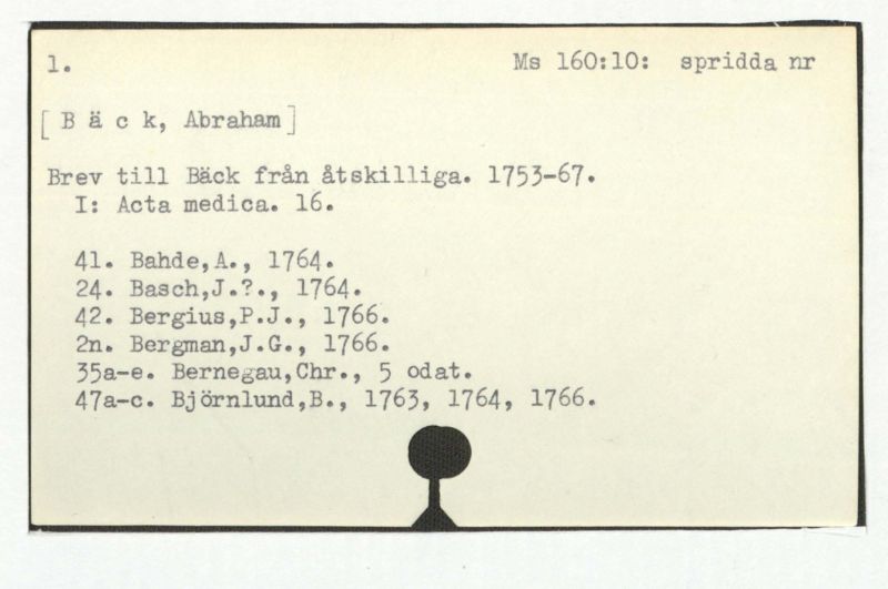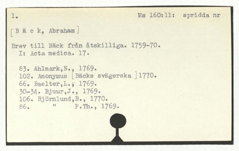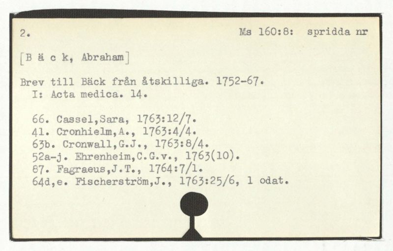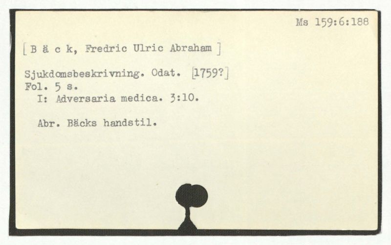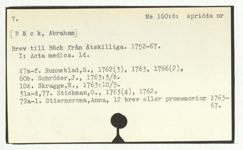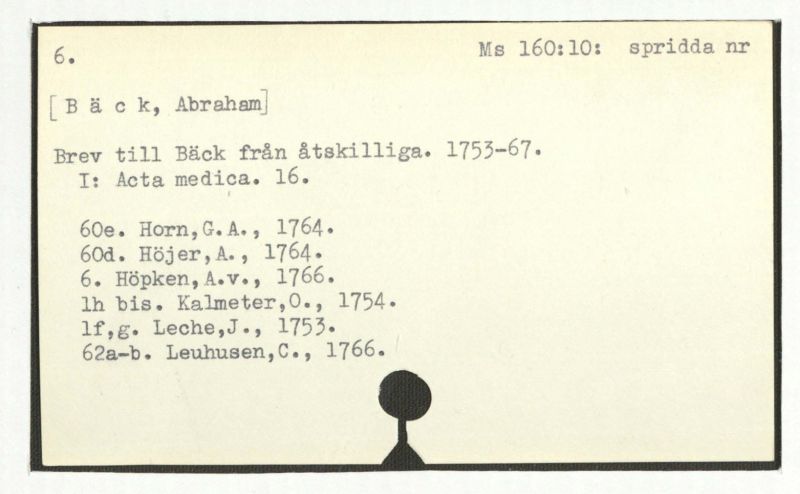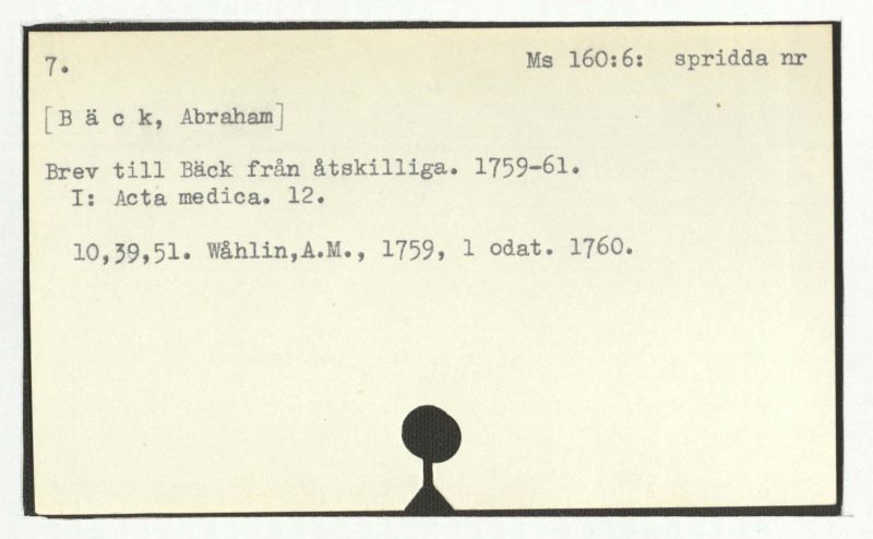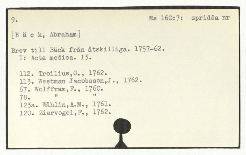 Brev till A.Bäck, 1759:12/5, 10/3, 1758:26/10, 29/12.