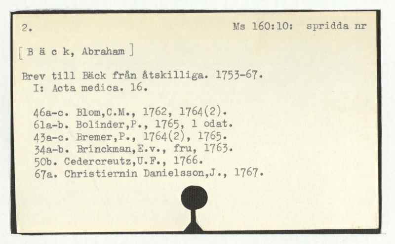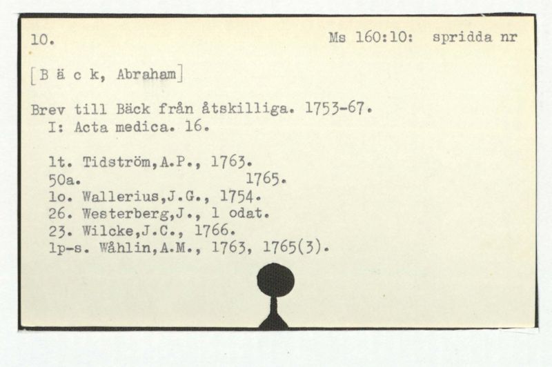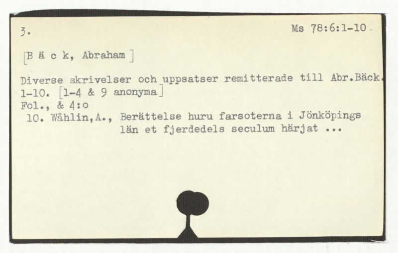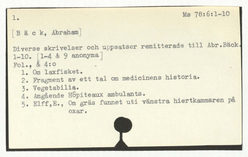 Diverse skrivveller och uppsatser remitterade till Abr.Bäck. 1-10. [1-4 & 9 anonyma]