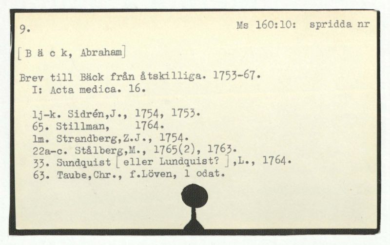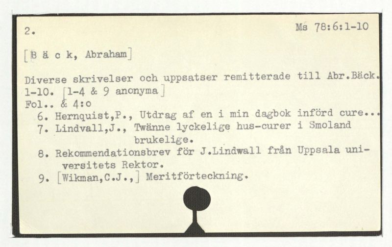 Diverse skrivselser och uppsatser remitterade till Abr.Bäck 1-10. [1-4 & 9 anonyma]
