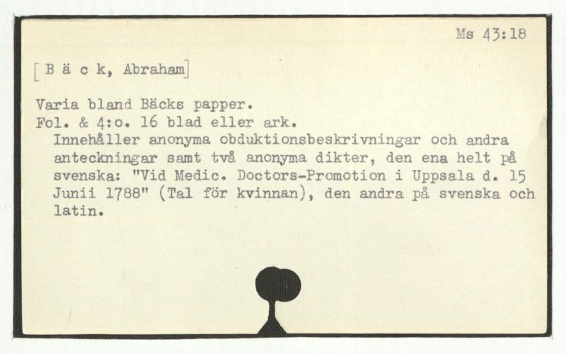 svenska: "Vid Medic. Doctors-Promotion i Uppsala d. 15
